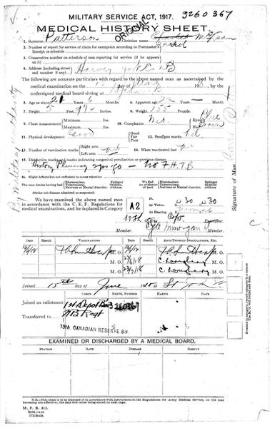 Private Carroll "Carl" MacLean Patterson, Canadian Expeditionary Force