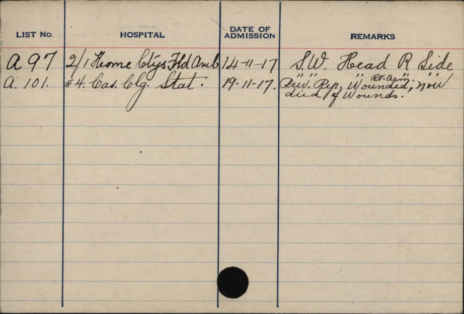 Commemorated on Page 107 of the First World War Book of Remembrance.