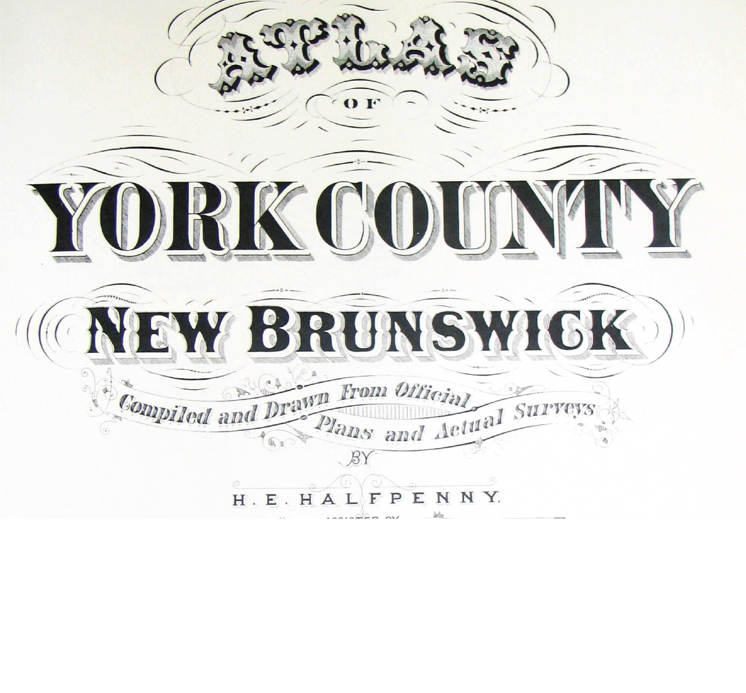 Halfpenny, H.E., Beckwith, A.C., Loggie, T.G. 1878. Atlas of York County New Brunswick. Compiled and Drawn From Official Plans and Actual Surveys. Halfpenny & Co. Fredericton, N.B. (A 1973 reprint was also produced).