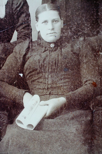 Undated tin type image of Alison Brown as an elderly woman (b. ca 1795, England - d. 19 Sep, 1877 Harvey Settlement). Source: Darryl Messer, Harvey, 26 Jul 2007