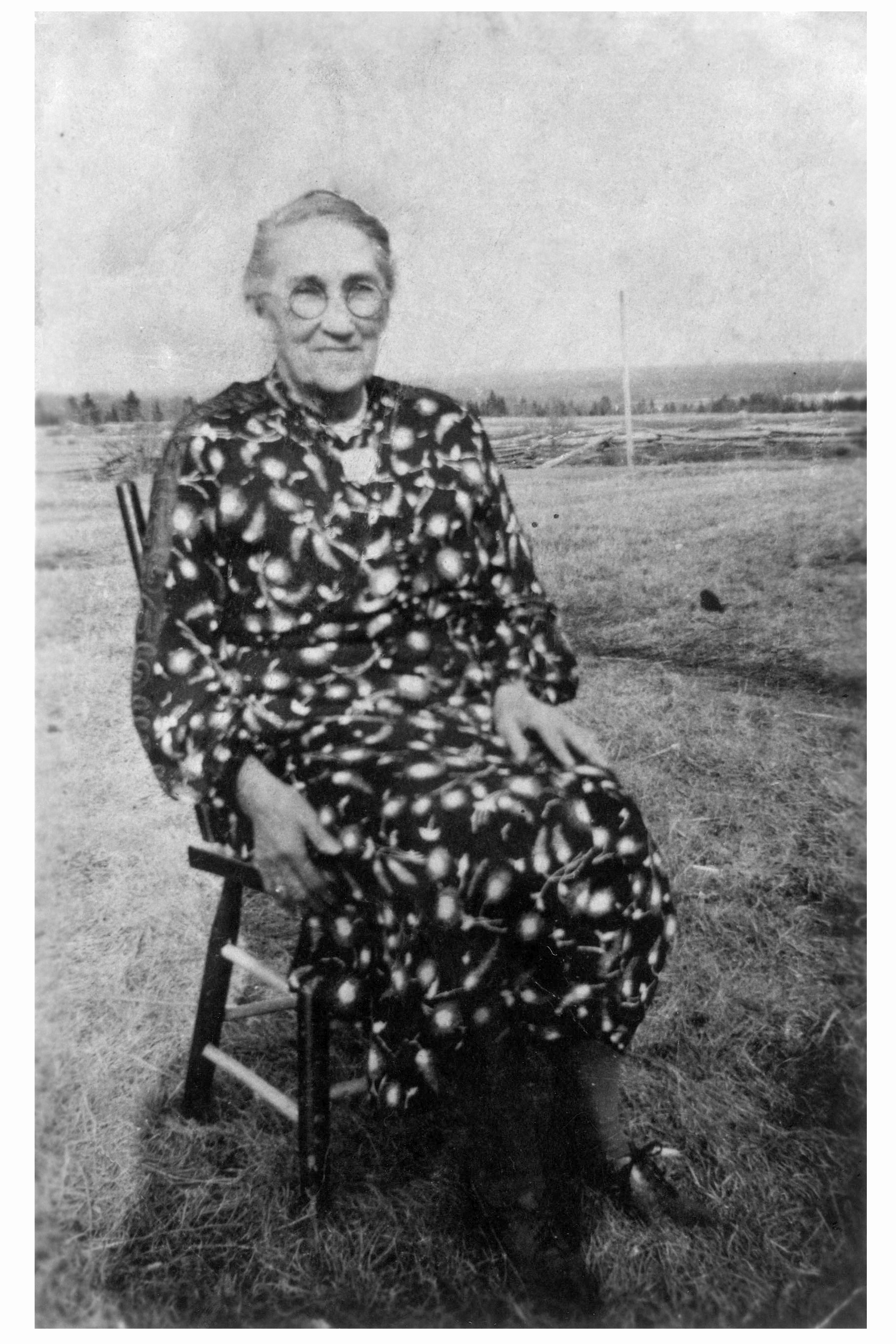 Undated and informal photographs of Annie Brown Patterson the second wife of James Patterson, both taken later in her life most likely on the family farm in Tweedside. A third image of Annie taken in the early 1920's with her son Carroll Patterson and daughter-in-law Emma Moffitt is found on Patterson Family Page 17. Source of both images: Hazen Patterson collection, Tweedside. Rephotographed by Tim Patterson, 1985. Rescanned and digitally enhanced Nov 2006. Hazen Patterson has subsequently passed away and location of originals are now unknown.