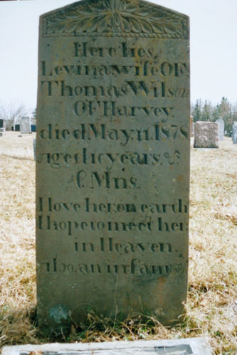 Son of Alexander Wilson & Elizabeth Miller. Born 26 Mar 1799 in Greenlawdean, Scotland. Christen 14 Apr 1799. Died 25 Jan 1864 in Harvey. Buried in Harvey Settlement Cemetery. Occupation Farmer. Religion Presbyterian.